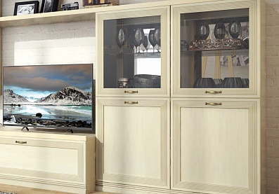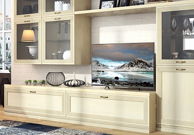 Серванты для гостиной – отличный способ оптимизировать пространство. Мебель состоит из отсека для посуды со стеклянными дверцами, отделениями с глухим фасадом, напольными или навесными тумбами, ящиков. В отдельных комплектах есть узкие шкафы для белья и одежды. Тумбу можно использовать как подставку под телевизор или аквариум. Мебель компактная, не занимает много места, подходит для малогабаритных квартир. Все серванты и элементы гарнитура модульные, их можно расставить так, как будет удобно владельцу.