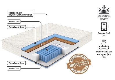 Матрас Anatomic dream Pro 120 х 200 Разная жесткость сторон с пружинным блоком