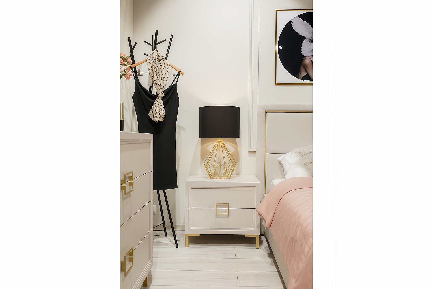 – описание: стиль ар-деко, минимализм, назначение для спальни, цвет кашемир серый, размер 53.8x60.1x45.1 см.