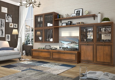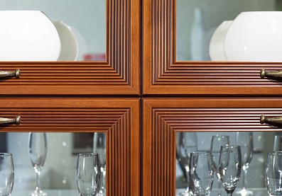 - Отделка фасадов выполнена испанским шелковисто-матовым лаком и патиной (эффект состаренного дерева);