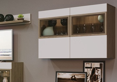Корпус предметов интерьера изготовлен в теплом цвете «давос трюфель», который прекрасно сочетается с более светлым, бежевым покрытием фасадов. Матовые поверхности с эффектом бархата подарят приятные тактильные ощущения во время эксплуатации мебели. Замена традиционной фурнитуры на скрытые профильные ручки облегчает внешний вид комплекта, визуально делает его более воздушным и компактным.