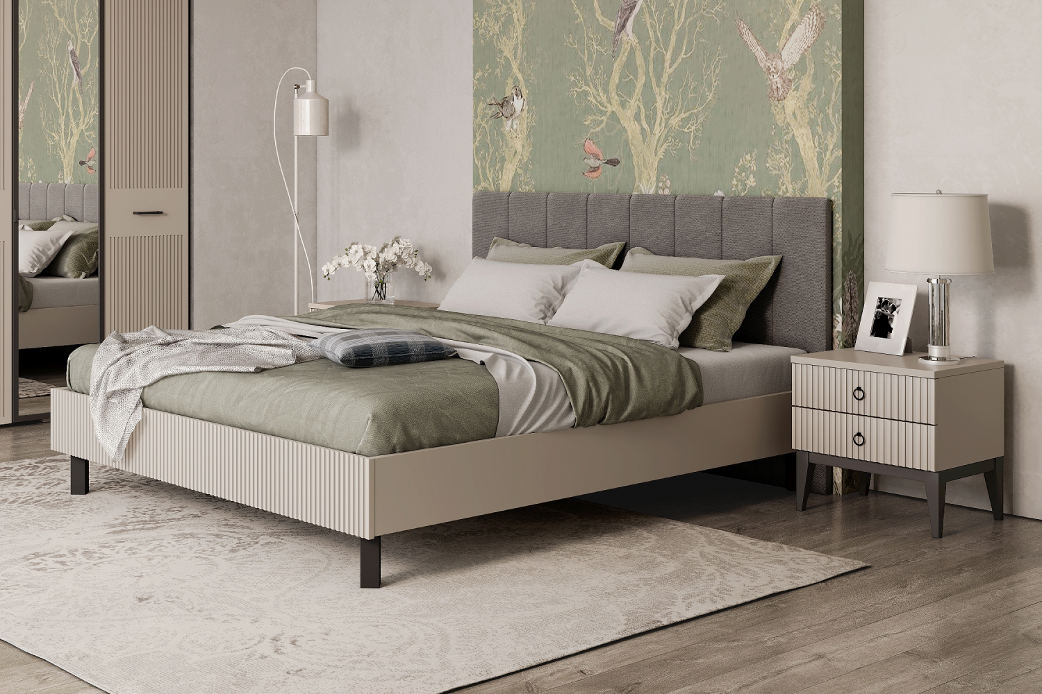 – описание: стиль современный, контемпорари, размер спального места 160 х 200 см, назначение для спальни, цвет кашемир серый.
