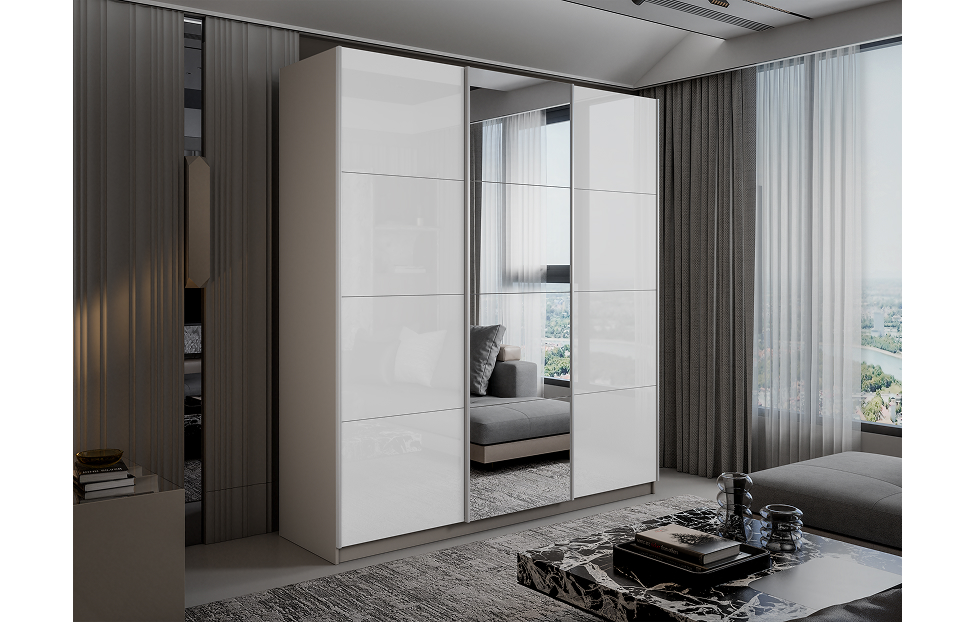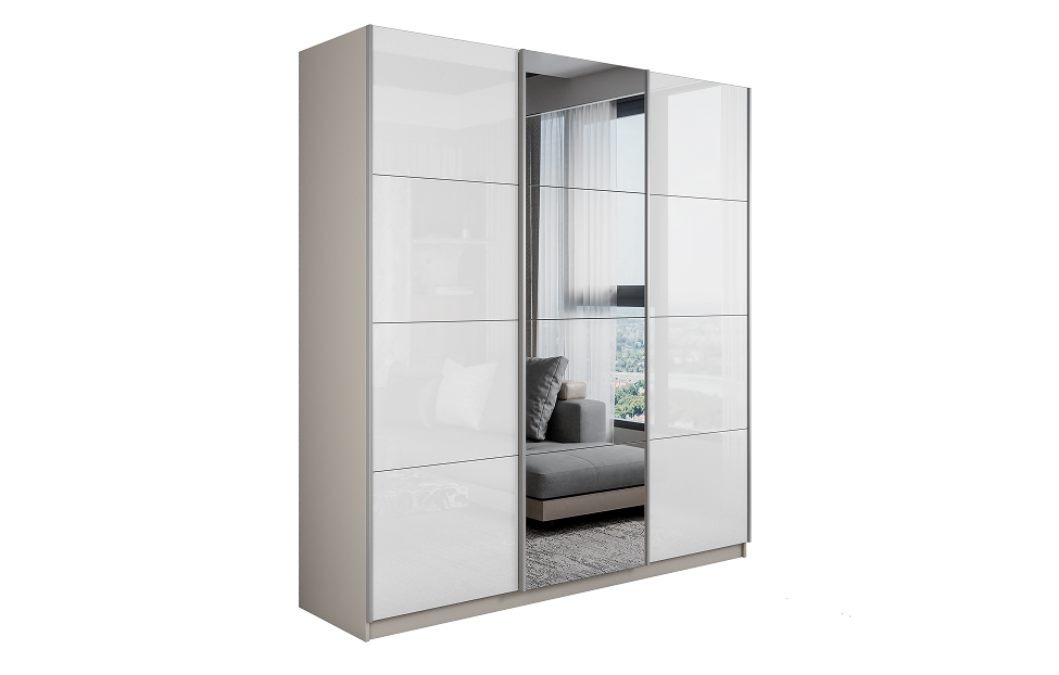 Купить Шкаф-купе Lux 210х230х57 кашемир Белый глянец/Зеркало/Белый глянец в интернет-магазине мебели «Ангстрем»