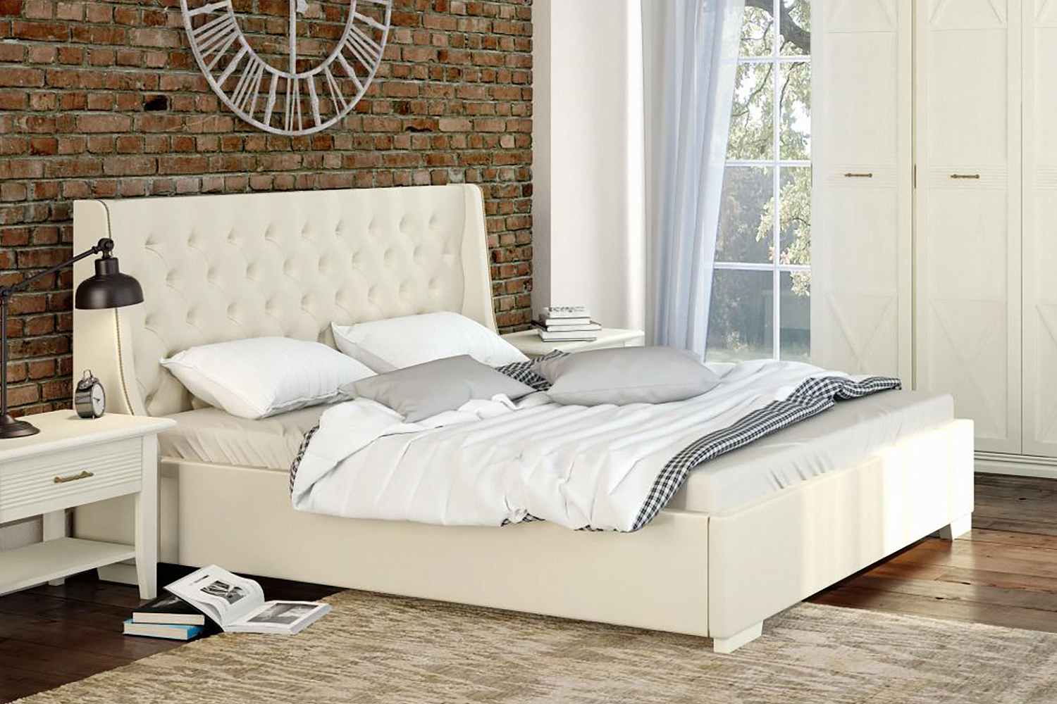 - Кровать мягкая с подъемным механизмом и ящиком для белья;